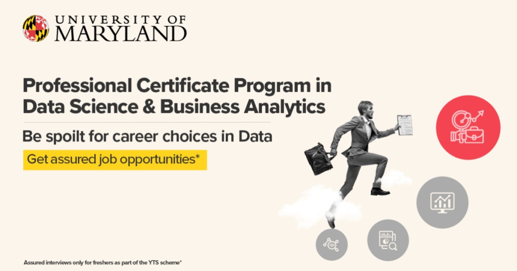 This Data Science course from “UpGrad” offers an 7-month Course that has Business Analytics as specializations. This course is created by collaborating “University of Maryland”. This course provides the course content in blended format i.e. live as well as recorded. This course from UpGrad has top-notch Faculty from college.